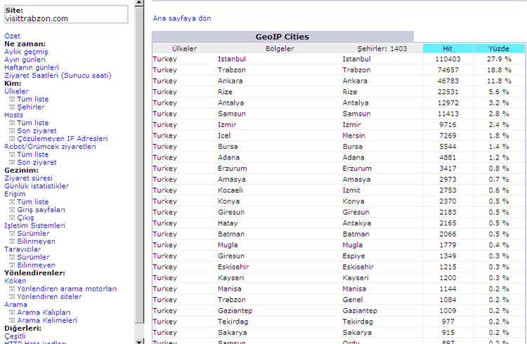 Sitemizin Haziran ayı şehir ve ülke bazındaki ilk 10 ziyaretçi istatistikleri...